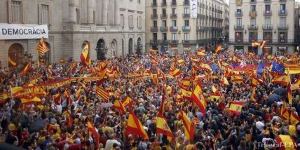 "Тысячи каталонцев маршируют в центре Барселоны в защиту испанского единства и против спорного референдума о независимости региона", - говорится в сообщении.