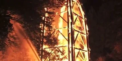 Из-за мощного огня и риск обвала 43-метровой башни пожарные не сразу начали тушить пожар, а сначала обеспечили безопасность в окрестностях. Причина пожара неизвестна, ее выяснят после проведения расследования.