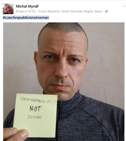 Тогда чехи начали постить свои фото с хэштегом #czechrepublicisnotzeman, заявляя что позиция президента отличается от мнений граждан Чехии.