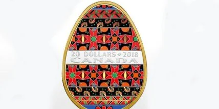 Королевский монетный двор Канады намерен выпустить монету в форме украинской писанки из серебра с позолотой с традиционными украинскими узорами.