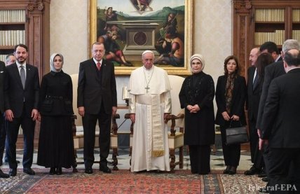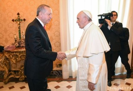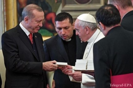Президент Турции Реджеп Тайип Эрдоган впервые за почти 60 лет встретился с Папой Римским, пишет ANSA. Их разговор тет-а-тет длилась около 50 минут.