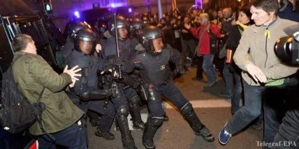 Ряд демонстрантов попытались прорвать полицейское оцепление недалеко от представительства правительства страны в Каталонии. Это привело к стычкам протестующих с сотрудниками правоохранительных органов. Некоторые собравшиеся в знак протеста жгли фотографии короля Испании. Демонстрации проходят и в других городах автономного сообщества.