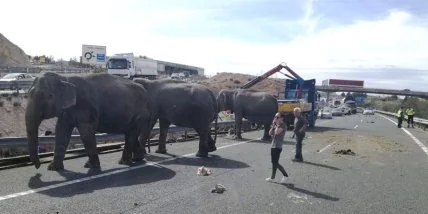 На юго-востоке Испании грузовик, перевозивший пять цирковых слонов, попала в ДТП.