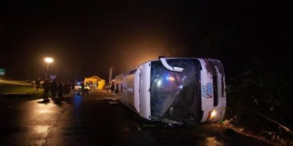 "Авария произошла в ночь на пятницу, около 0:40. В автобусе находились 38 человек", - сообщили спасатели, прибывшие на место аварии из 12 спасательных пунктов департамента Уаза.