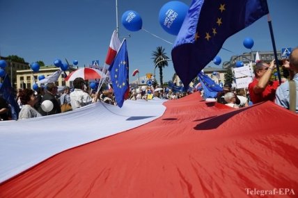 В Варшаве оппозиция и сторонники Евросоюза вышли на многотысячный Марш свободы под лозунгом "Европа имеет значение", полиция сообщила о 12 тысяч участников.