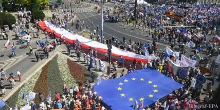 В Варшаве оппозиция и сторонники Евросоюза вышли на многотысячный Марш свободы под лозунгом "Европа имеет значение", полиция сообщила о 12 тысяч участников.