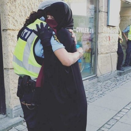 Фото объятий датской полицейской и мусульманки стало вирусным в сети.