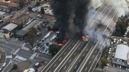 На кольцевой трассе близ итальянского города Болонья взорвался грузовик, который, вероятно, перевозил горючие материалы.