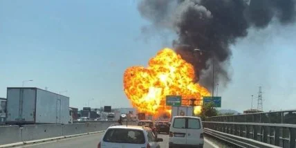 На кольцевой трассе близ итальянского города Болонья взорвался грузовик, который, вероятно, перевозил горючие материалы.