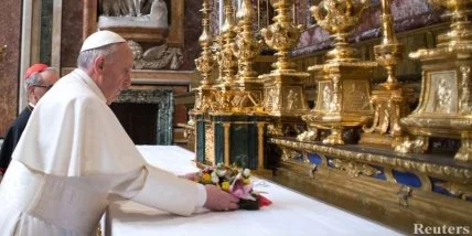 В четверг утром во время посещения римской базилики Санта Мария Маджоре, Папа Франциск принес с собой небольшой букетик цветов, который положил к иконе Salus Populi Romani (Спасение римского народа).