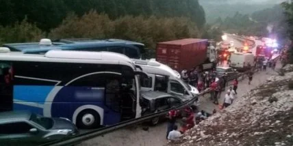 Авария, в которой друг в друга врезались один грузовик, два пассажирских автобуса, два микроавтобуса и 27 машин, произошла на трассе Эскишехир-Бурса в пятницу вечером, когда начались официальные выходные по случаю мусульманского праздника Курбан-байрам.
