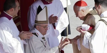 Символы верховной власти Римского понтифика - так называемый "перстень Рыбака"и омофор (pallio) - были вручены Папе Римскому Франциску во вторник во время проходящей на площади св. Петра торжественной инаугурационной мессы, сообщает РИА Новости. Церемония интронизации заменила собой акт коронации, в последний раз совершенный в Ватикане в 1963 году во время восшествия на Апостольский престол Папы Павла VI, который впоследствии пожертвовал свою тиару (тройную папскую корону) в пользу бедных.