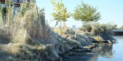 В городе Айтолико в западной Греции пауки сплели гигантскую 300-метровую паутину на местном пляже. Как сообщает The Guardian, траву, деревья и кустарники затянули "в сети" пауки из рода Tetragnatha. Такое устрашающее на первый взгляд явление вызвано резким увеличением популяции комаров в регионе из-за теплой погоды. Избыток пищи привел к демографическому взрыву у пауков, которые любят селиться у водоемов, обладают длинными лапами и вытянутыми туловищами. Благодаря своему небольшому весу они могут довольно быстро бегать по воде. Отмечается, что для людей эти пауки не опасны. Впрочем, как и для самой природы. Наоборот, они помогут уменьшить популяцию москитов, которая донимала жителей города. Ранее такой феномен наблюдался в 2003 году, когда вскоре после окончания брачного сезона численность популяции пауков резко сокращалась, а паутина разлагалась естественным образом, оставив флору нетронутой.