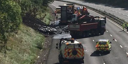 Водитель умер после того, как три грузовых авто столкнулись и загорелись на автобане M40 в британском графстве Уорикшир, передает УНН со ссылкой на Sky News.