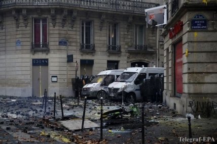 Во время протеста произошли столкновения демонстрантов с полицией. Хулиганы жгли машины, строили баррикады, прорывались в частные дома в наиболее престижных округах французской столице. Они даже сделали краской оскорбительные надписи в адрес Э.Макрона на одном из символов города - Триумфальной арке.