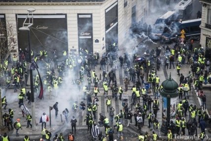 "В столице Франции в субботу, 8 декабря, начались столкновения протестующих с полицией. Правоохранители применили слезоточивый газ против около 1500 демонстрантов, собравшихся на Елисейских полях. Еще до начала очередной акции протеста "Желтых жилетов", по меньшей мере, 340 человек были арестованы", - говорится в сообщении.