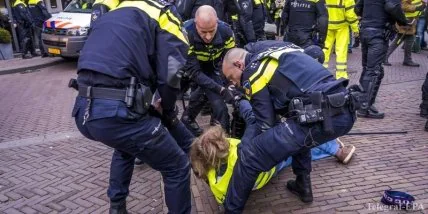 Протестующие вышли на трамвайные линии и бросали разные предметы в полицию, которая ответила шумовыми гранатами со слезоточивым газом и задержала несколько человек.