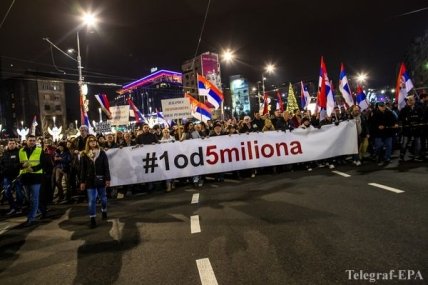 Они считают Вучича самодержцем, а его партию - коррумпированной. Подобным образом сербы протестуют уже четвертую субботу подряд. Первая акция протеста против президента прошла в конце ноября после того, как на юге Сербии был избит один из представителей сербской оппозиции.