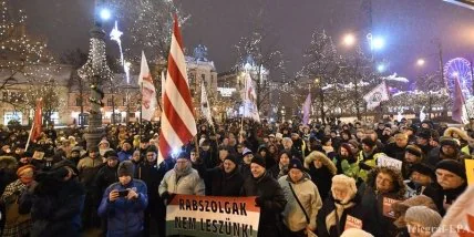 Толпа в количестве не менее 10 000 людей собрались в субботу возле здания парламента Венгрии в Будапеште в знак протеста против изменений законодательства, утвержденных в декабре, позволяющие работодателям требовать от рабочих до 400 часов сверхурочных труда ежегодно.