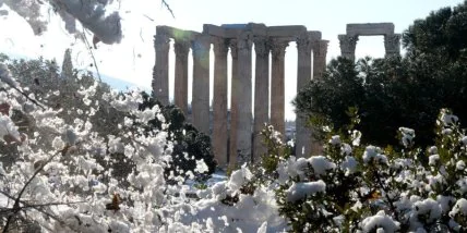 "Афинский акрополь, национальные памятники и места археологических раскопок в Афинах во вторник припорошил снег, а школы в регионе Аттики закрыли", - говорится в сообщении.
