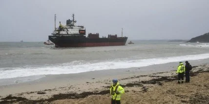 В декабре судно, следовавшее из Нидерландов, село на мель вблизи порта Фалмут и получило повреждения топливного бака.