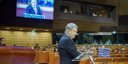 Он обратился к генеральному секретарю Совета Европы Турбйорну Ягланду, президенту ПАСЕ Лилиан Мори-Паскье и членам Ассамблеи со словами, что Совет Европы сейчас испытывает тревожные трудности политического характера.