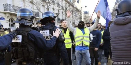 Сегодня, 23 февраля, по всей Франции возобновились акции протестов «желтых жилетов», которые традиционно сопровождаются насильственными действиями и стычками между протестующими и полицией с повреждением имущества городов.