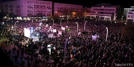 Тысячи протестующих в столице Черногории Подгорице вышли на протест в субботу, требуя отставки президента Мило Джукановича и его правительства из-за обвинений в коррупции, кумовстве и злоупотреблении служебным положением.