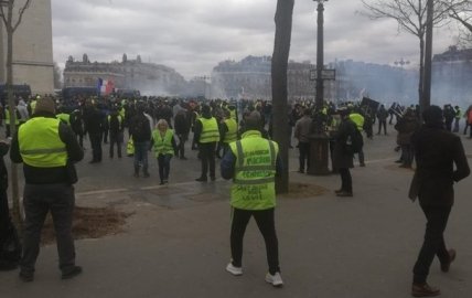 Ранее сообщалось, что в результате столкновений во время акций протеста движения "желтых жилетов", которые проходят в субботу, 16 марта, правоохранители арестовали по меньшей мере 94 человек. Демонстранты бросали в правоохранителей брусчатку, в ответ на это полиция применила слезоточивый газ и шумовые гранаты.