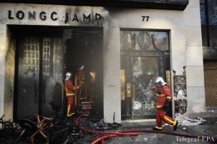 По информации агентства, после прошедших накануне столкновений протестующих с полицией, пытавшейся сдержать их натиск с помощью слезоточивого газа и водяных пушек, Елисейские поля выглядят как место боевых действий.