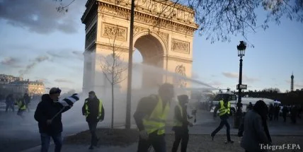 По информации агентства, после прошедших накануне столкновений протестующих с полицией, пытавшейся сдержать их натиск с помощью слезоточивого газа и водяных пушек, Елисейские поля выглядят как место боевых действий.