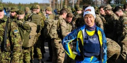 Лидер Эстонии с тяжелым рюкзаком прошла 30 км с военными (Фото, Видео)