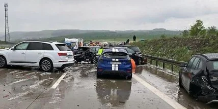 "Внезапный град привел к образованию ледяной корки на дорожной поверхности. Более 50 транспортных средств попали в аварию", - говорится в сообщении.