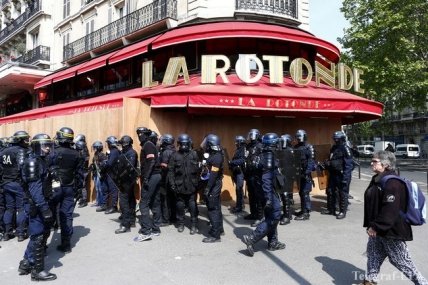В Париже на первомайских демонстрациях произошли короткие столкновения между полицией и митингующими.