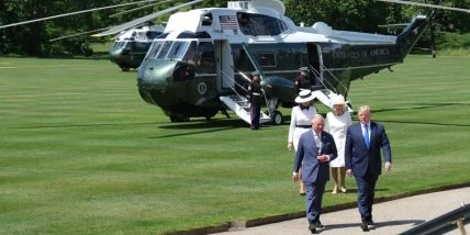 Возле вертолета Трампа с женой от имени королевы встречал принц Чарльз с герцогиней Корнуольской. После этого президентскую чету на крыльце встретила сама королева.