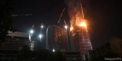 В Варшаве сгорел недостроенный небоскреб: искры летели со 130-метровой высоты