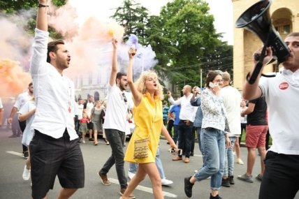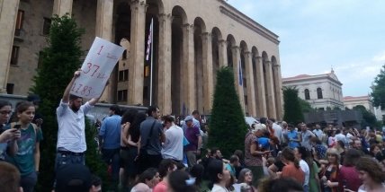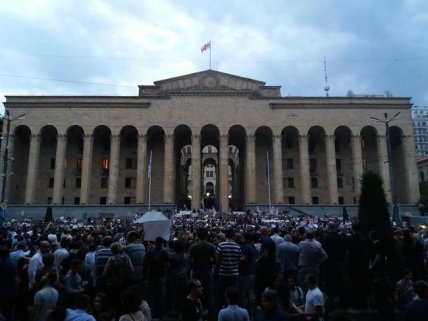 В Тбилиси тысячи людей вышли на акцию протеста к зданию парламента из-за скандального поведения российской делегации, прибывшей в Грузию на сессию Межпарламентской ассамблеи православия.