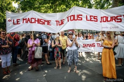 Женщины всех возрастов и несколько мужчин также провели 74 секунды молчания в честь 74 женщин, которых убили во Франции в этом году, согласно данным, собранным группой в Facebook "Femicides par compagnons ou ex". Она сказала, что четырех женщин убили на этой неделе.