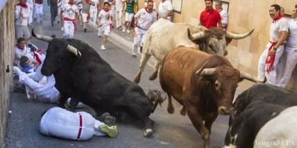Красный Крест сообщил, что на этот раз никто не пострадал от укола бычьих рогов. Двое получили травмы руки после падения, двое других - ушибы головы, еще один человек получил травму грудной клетки.