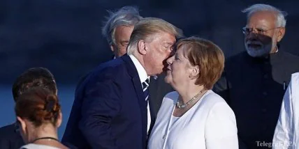 Отметим также, что это был не последний поцелуй на фотосессии второго дня саммита G7. Президент США отличился еще раз, поцеловав лидера ФРГ Ангелу Меркель.