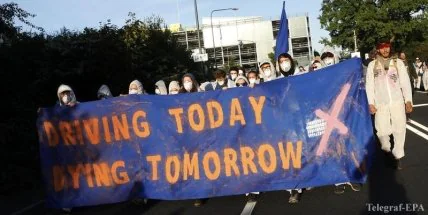 Более 25 тысяч эко-активистов вышли на демонстрации возле Международного автосалона во Франкфурт.