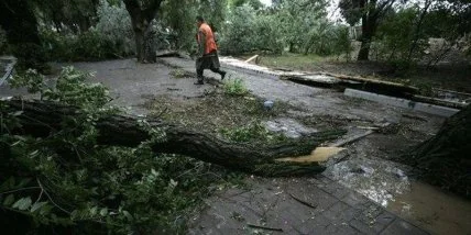 Ураганный ветер повалил деревья, сорвал крыши с домов, повредил линии электропередачи в Тбилиси и в городе Рустави в 11 км от грузинской столицы, пострадали два человека, сообщает в субботу Общественное телевидение Грузии.