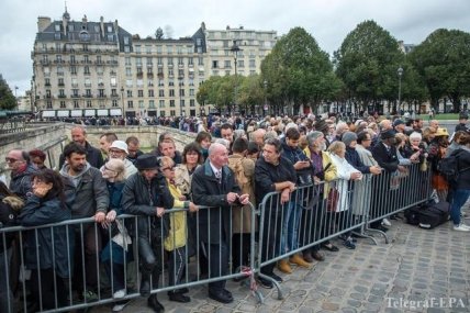 Телеканалы Франции показывают огромную очередь французов, которые во дворе Дома инвалидов под дождем ожидают возможности воздать дань памяти Жаку Шираку.