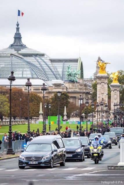 Эта церемония прощания французов проходит по просьбе семьи Ширак. Гроб внесли бывшие офицеры безопасности Елисейского дворца, служившие при Шираке.