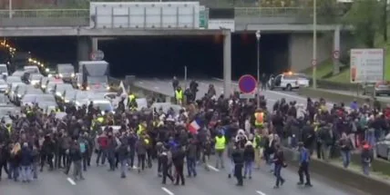"Желтые жилеты" на честь годовщины движения перекрыли кольцевую дорогу (Видео)