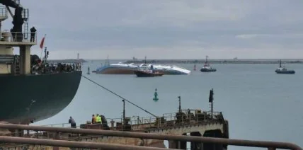 В Румынии перевернулось грузовое судно (Видео)