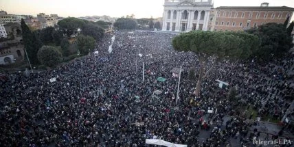 Против популизма и Сальвини: десятки тысяч "сардин" вышли на улицы Рима (Фото)