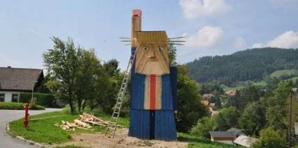 Почти восьмиметровое сооружение, возведенное в прошлом году в селе на северо-востоке Словении, изображало Трампа с его фирменной прической, в синем костюме, белой рубашке и длинном красном галстуке. Его правая рука - сжатая в кулак - была поднята высоко, как у Статуи свободы в Нью-Йорке.