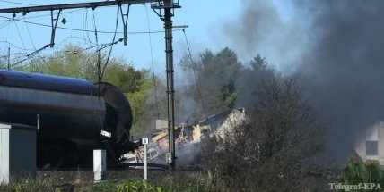 В четверг пожарные начали откачивать 50 т остатков токсичного вещества на месте сгоревшего поезда.