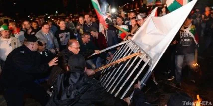 Участники протеста забрасывали полицейских камнями и яйцами, выкрикивая лозунги против лидирующей на выборах бывшей партии власти "Граждане за европейское развитие Болгарии" (ГЕРБ).